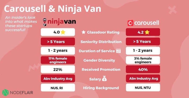 Both Ninja Van and Carousell seem to hire people from a variety of backgrounds, but it can be observed that both companies have a preference for local NUS grads.